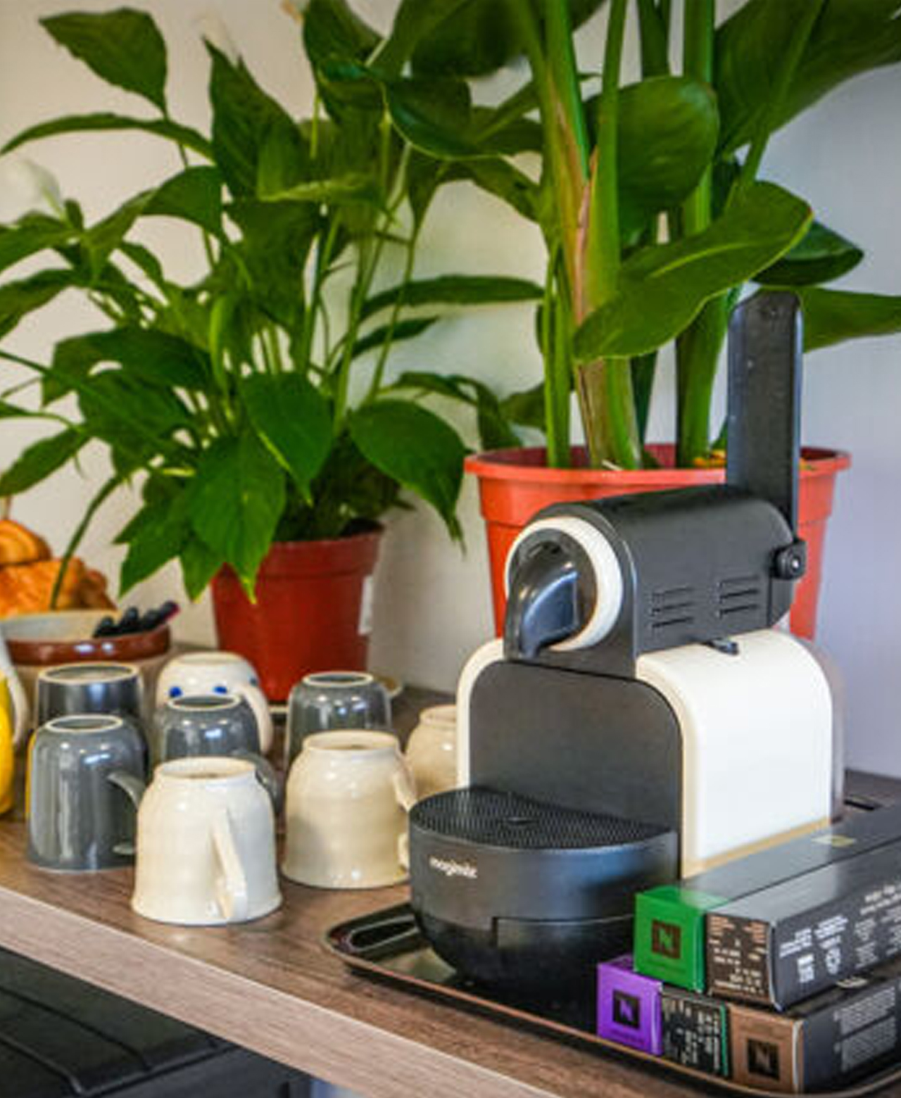 • Dans l’espace partagé : cuisine / accès café à volonté / tables hautes pour déjeuner